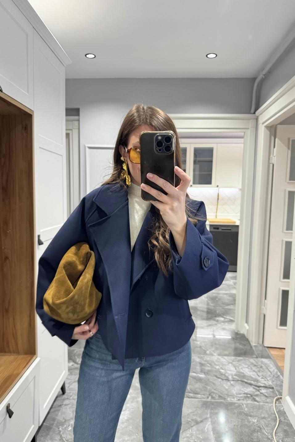 Arden Crop Trençkot Lacivert (BA25SKDG033)