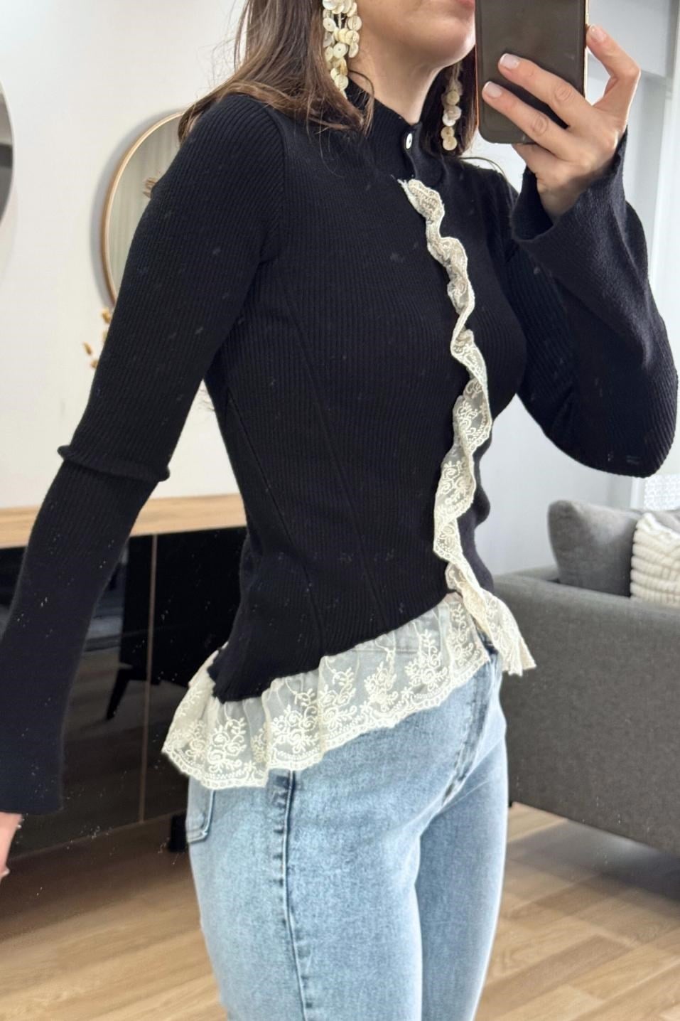 Dantelli Triko Hırka Siyah (BA26IYUG036)