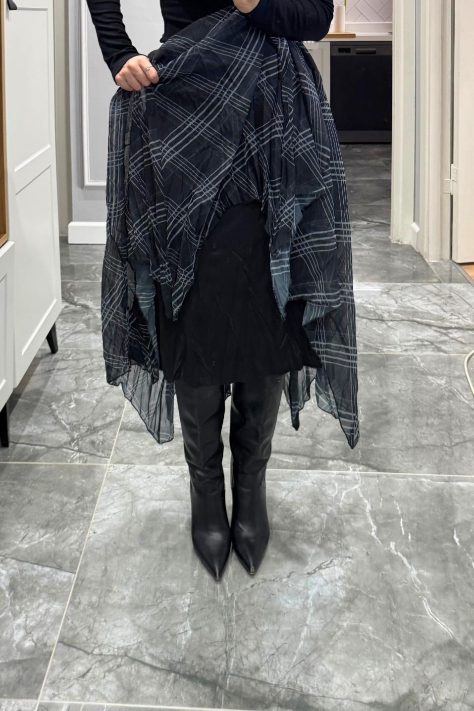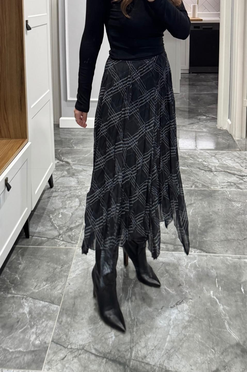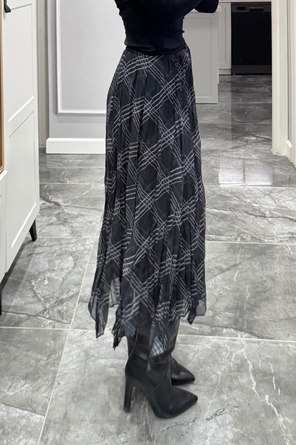 Ekose Desenli Kırışık Efektli Etek Siyah (BA25SKAG014)