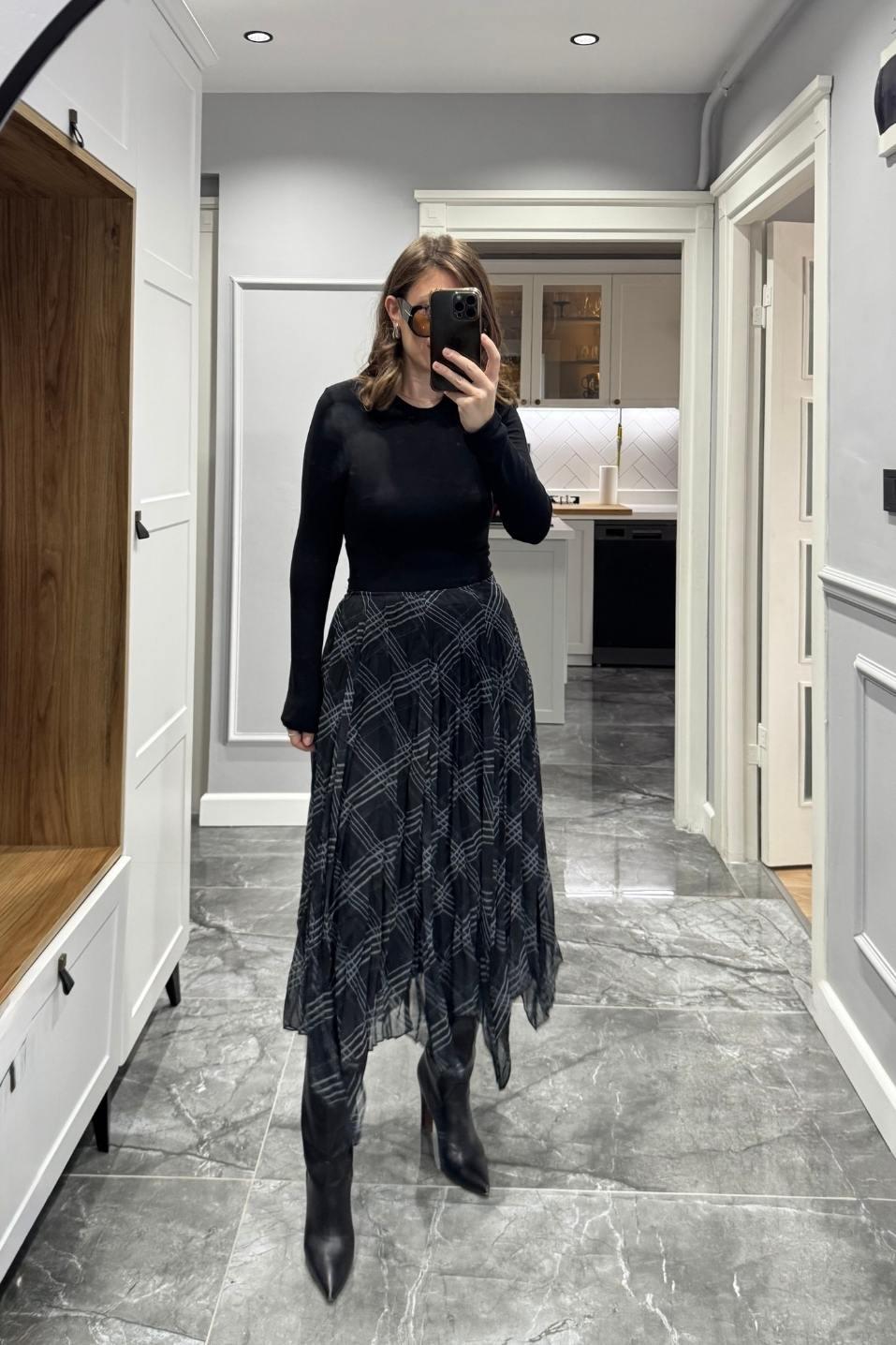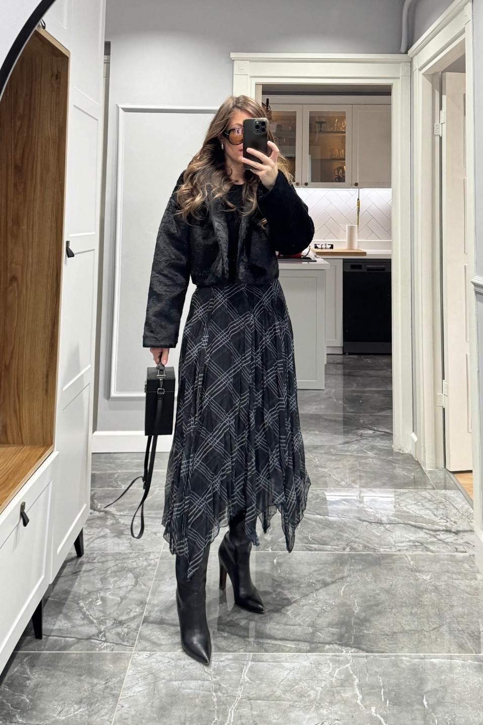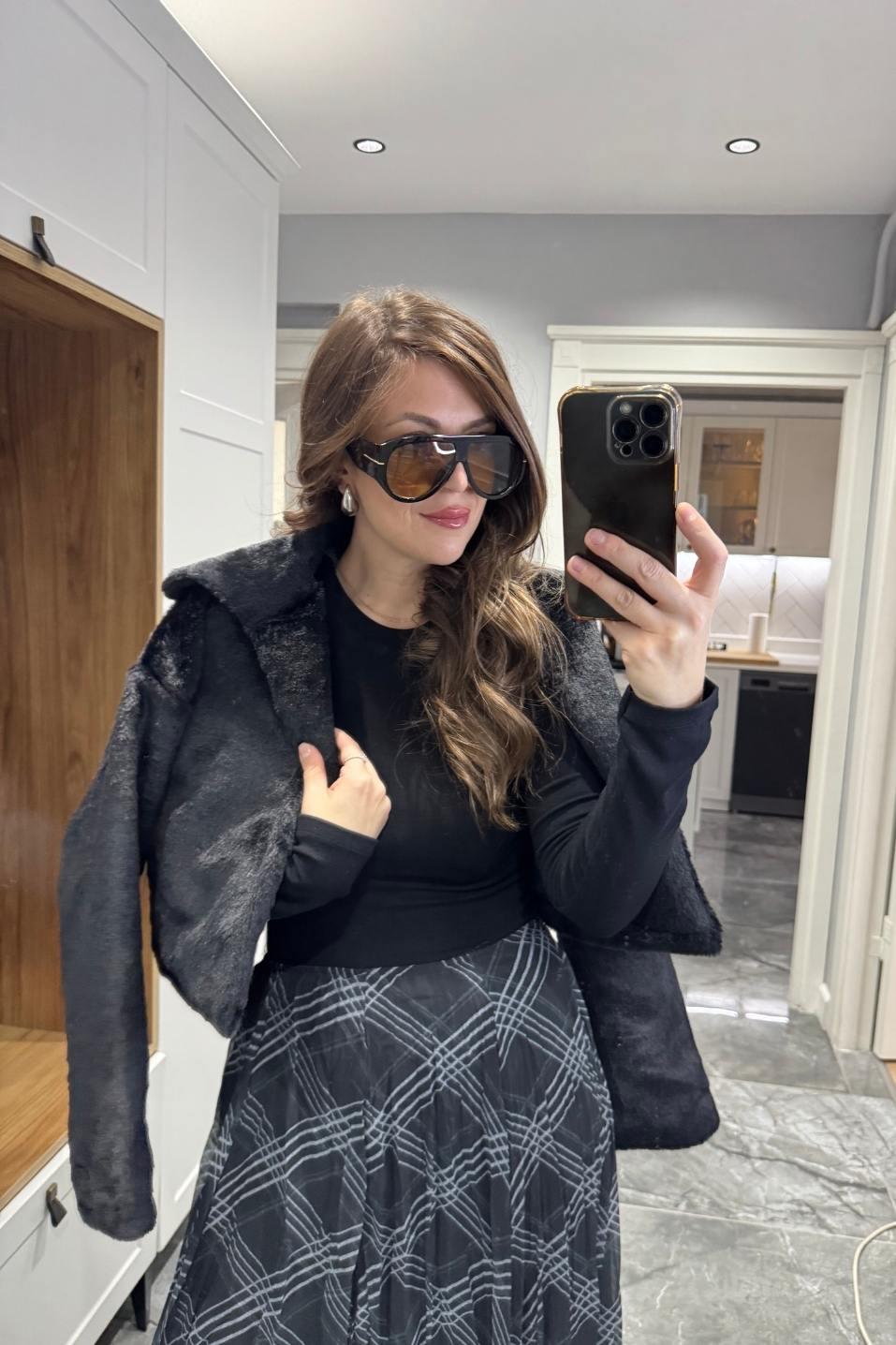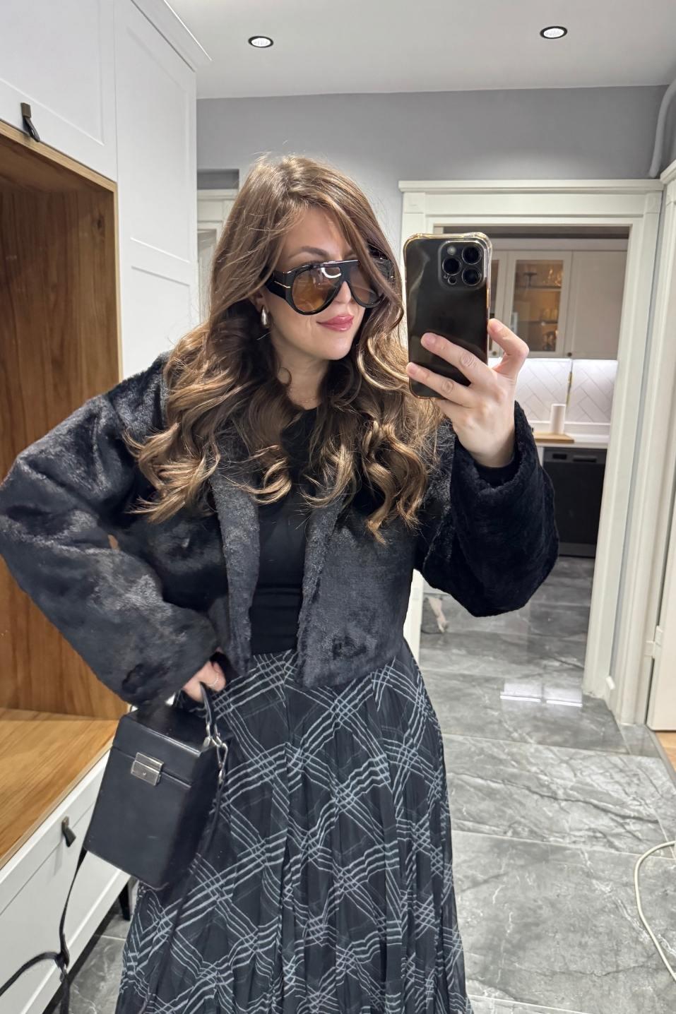 Ekose Desenli Kırışık Efektli Etek Siyah (BA25SKAG014)