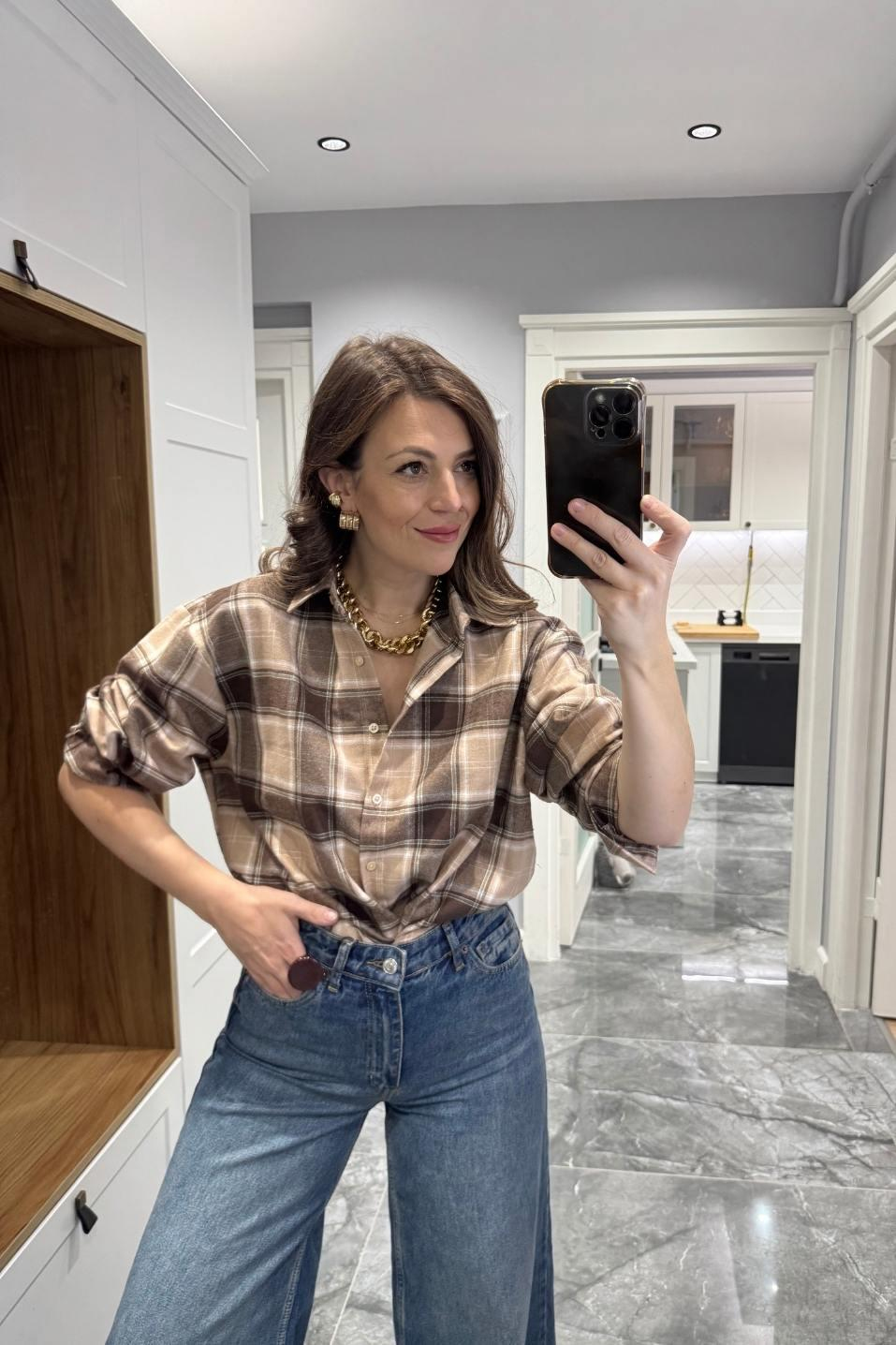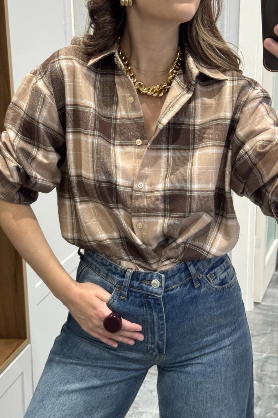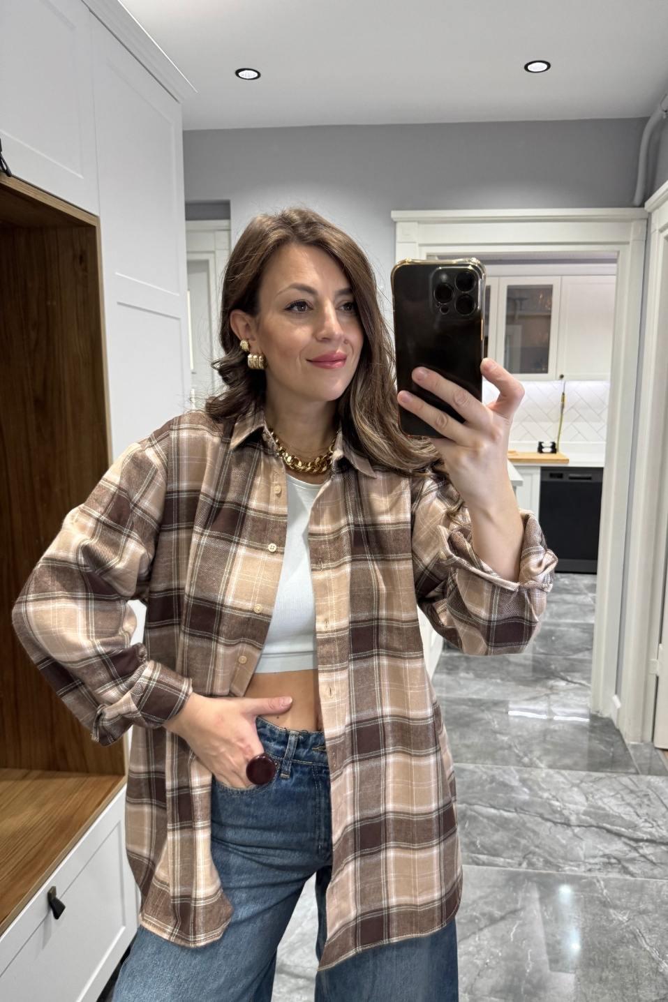 Ekose Oduncu Gömlek Kahverengi-Bej (BA25SKUG023)