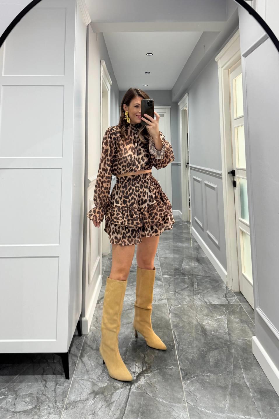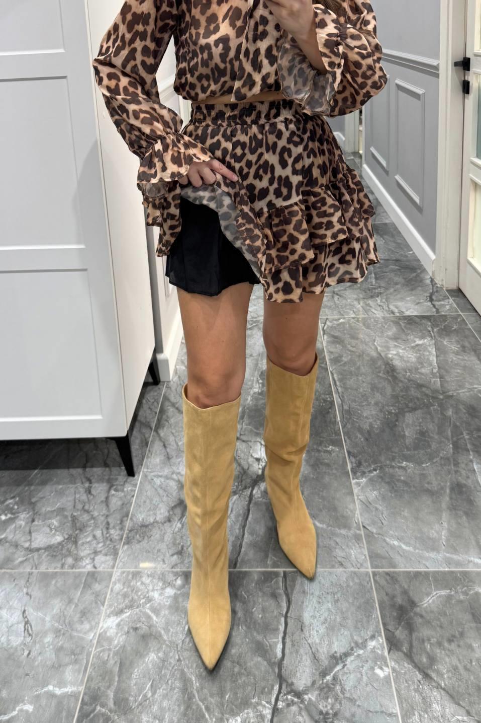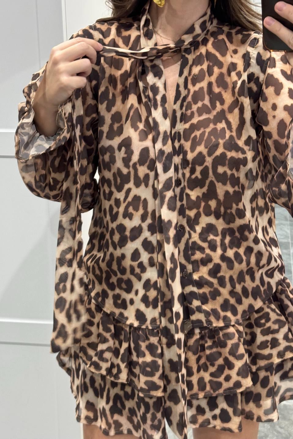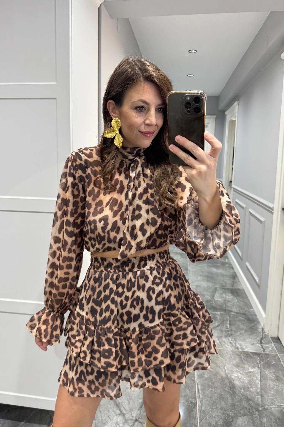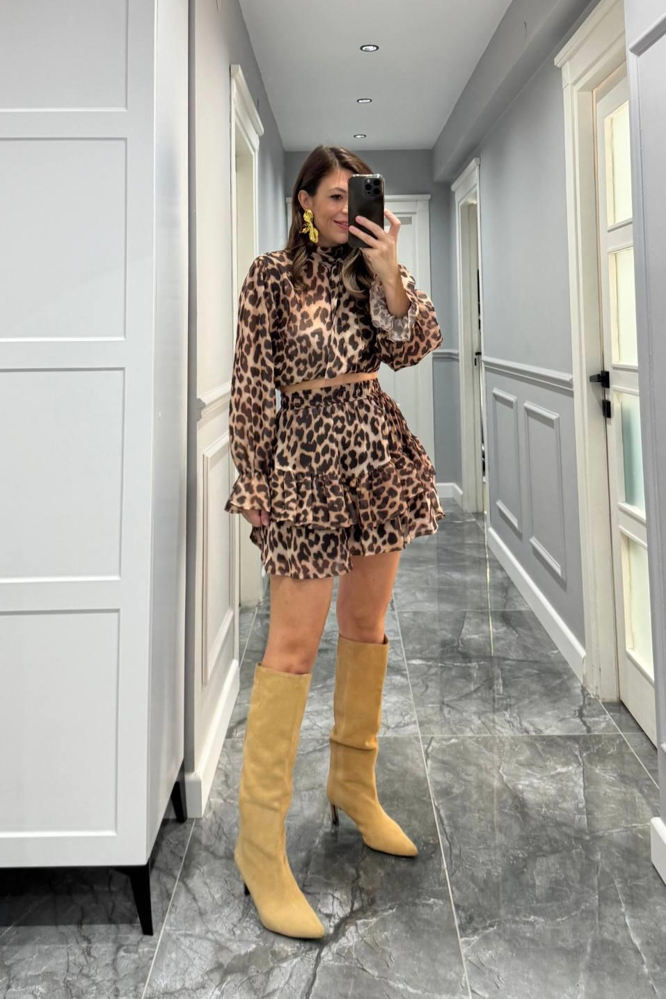 Fırfır Etek Şal Detaylı Gömlek İkili Takım Siyah-Camel (BA25SKDG021)