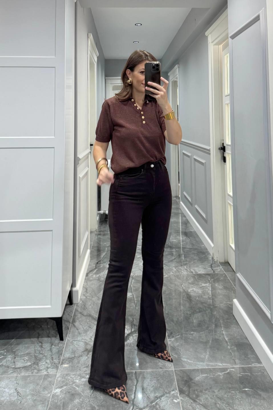 İspanyol Paça Likralı Jean Acı Kahve (BA24SKAG035)