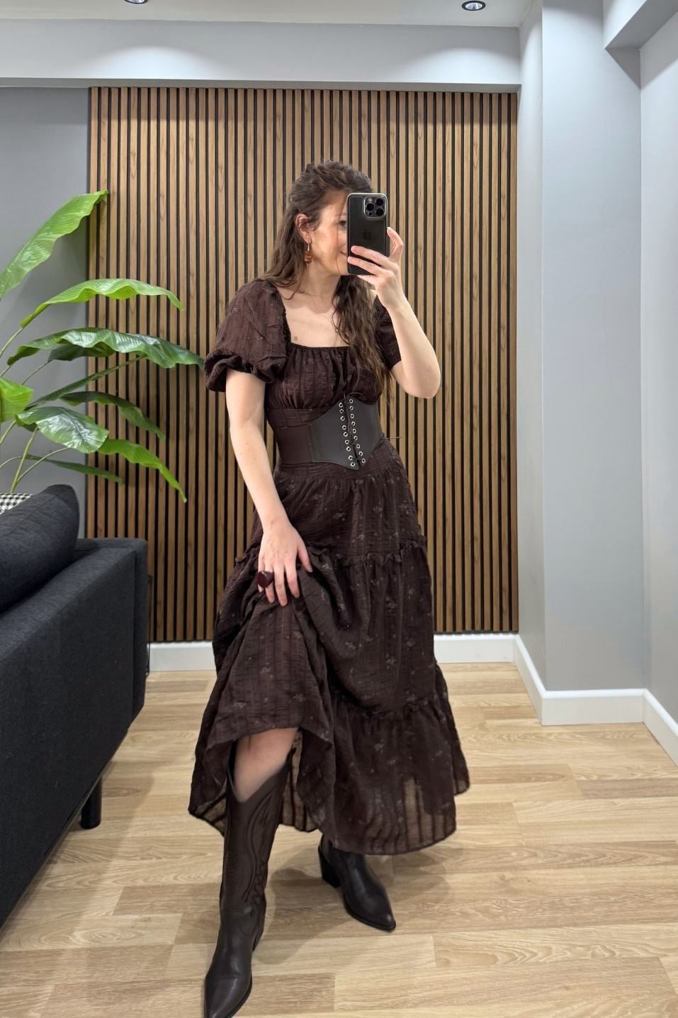 Luna Soft Bohem Elbise Kahverengi (BA26IYEL011)