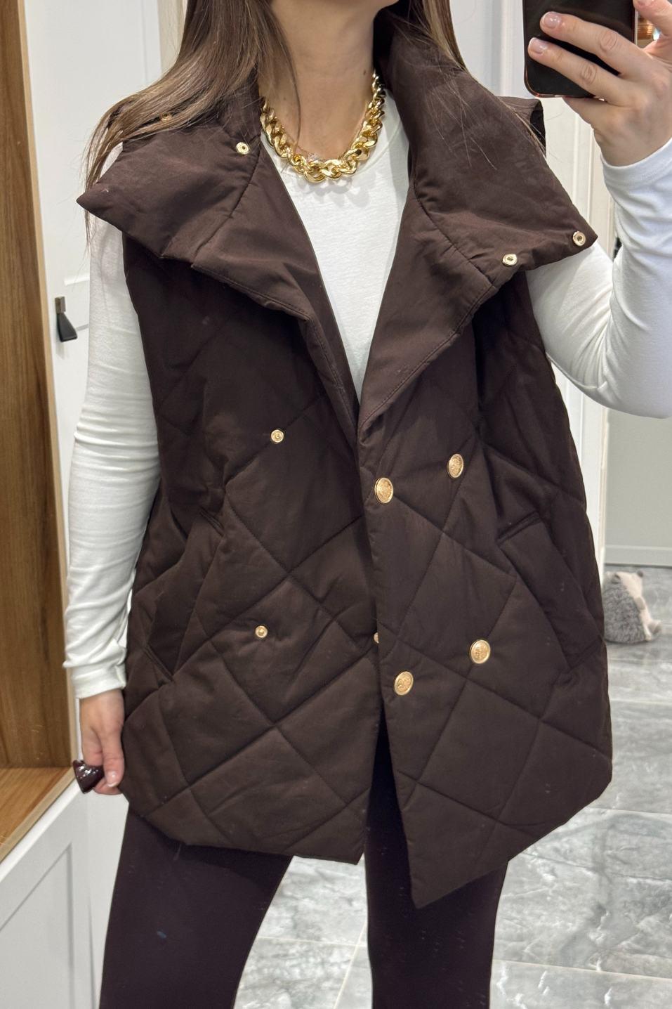 Marguess Kapitone Gold Düğmeli Yelek Kahverengi (BA25SKUG034)