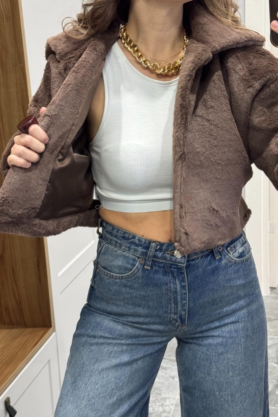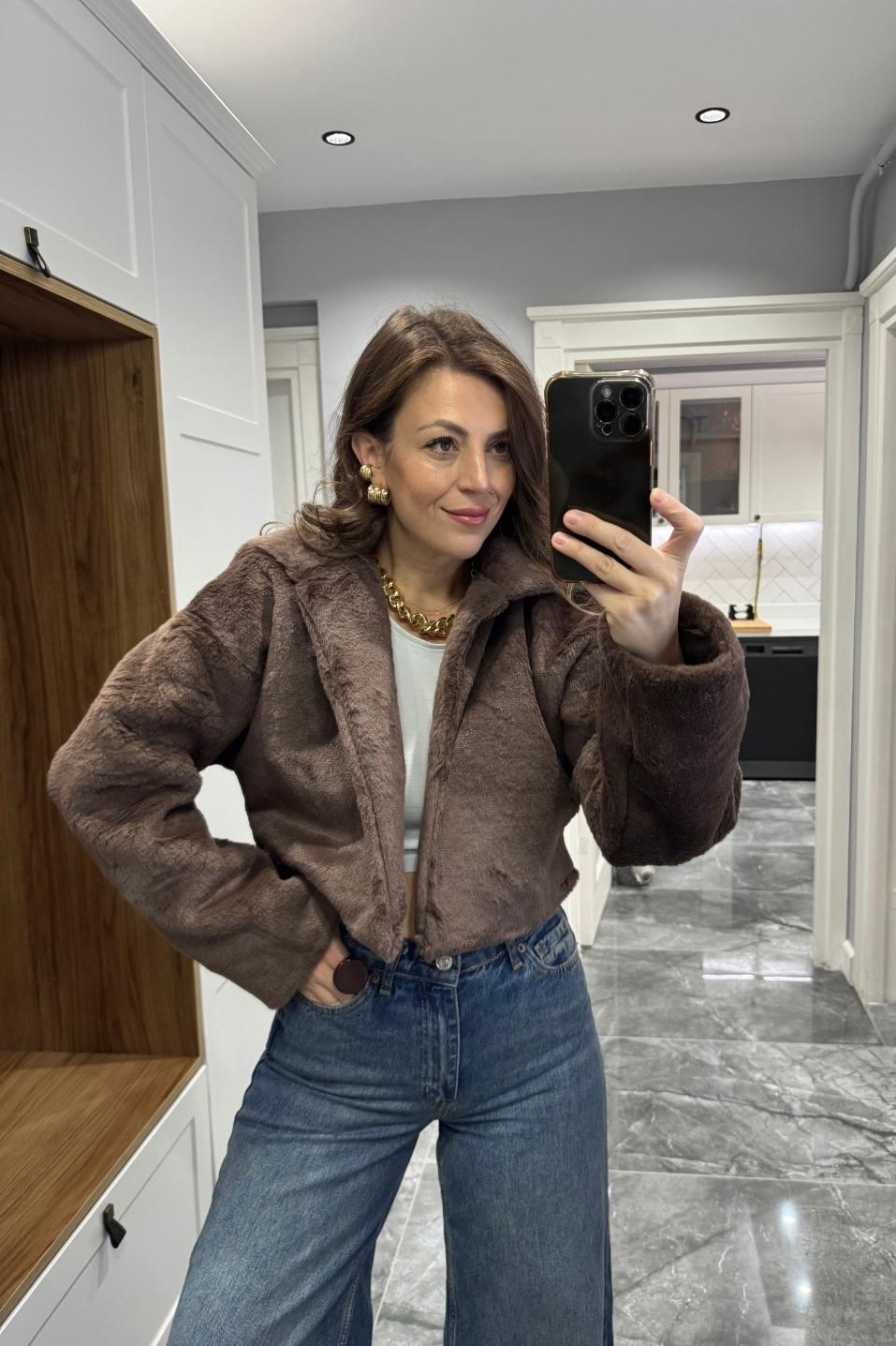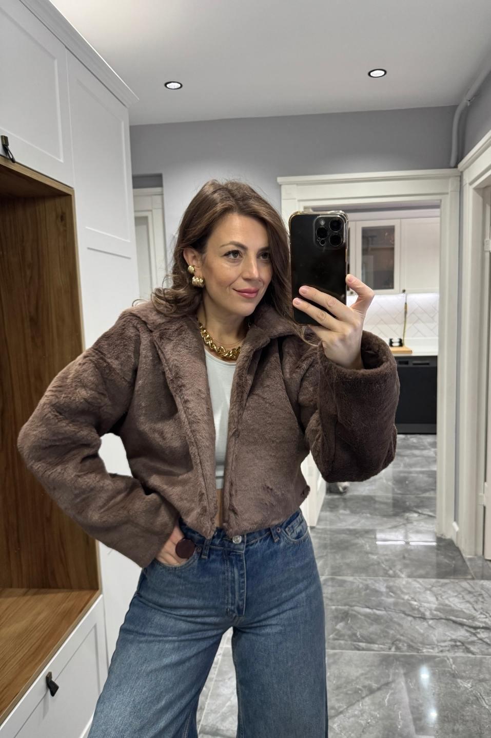Premium Crop Kürk Mont Kahverengi (BA25SKDG023)