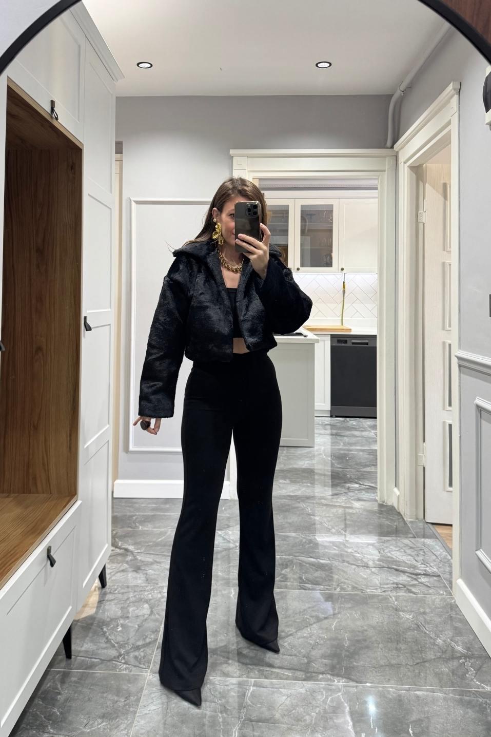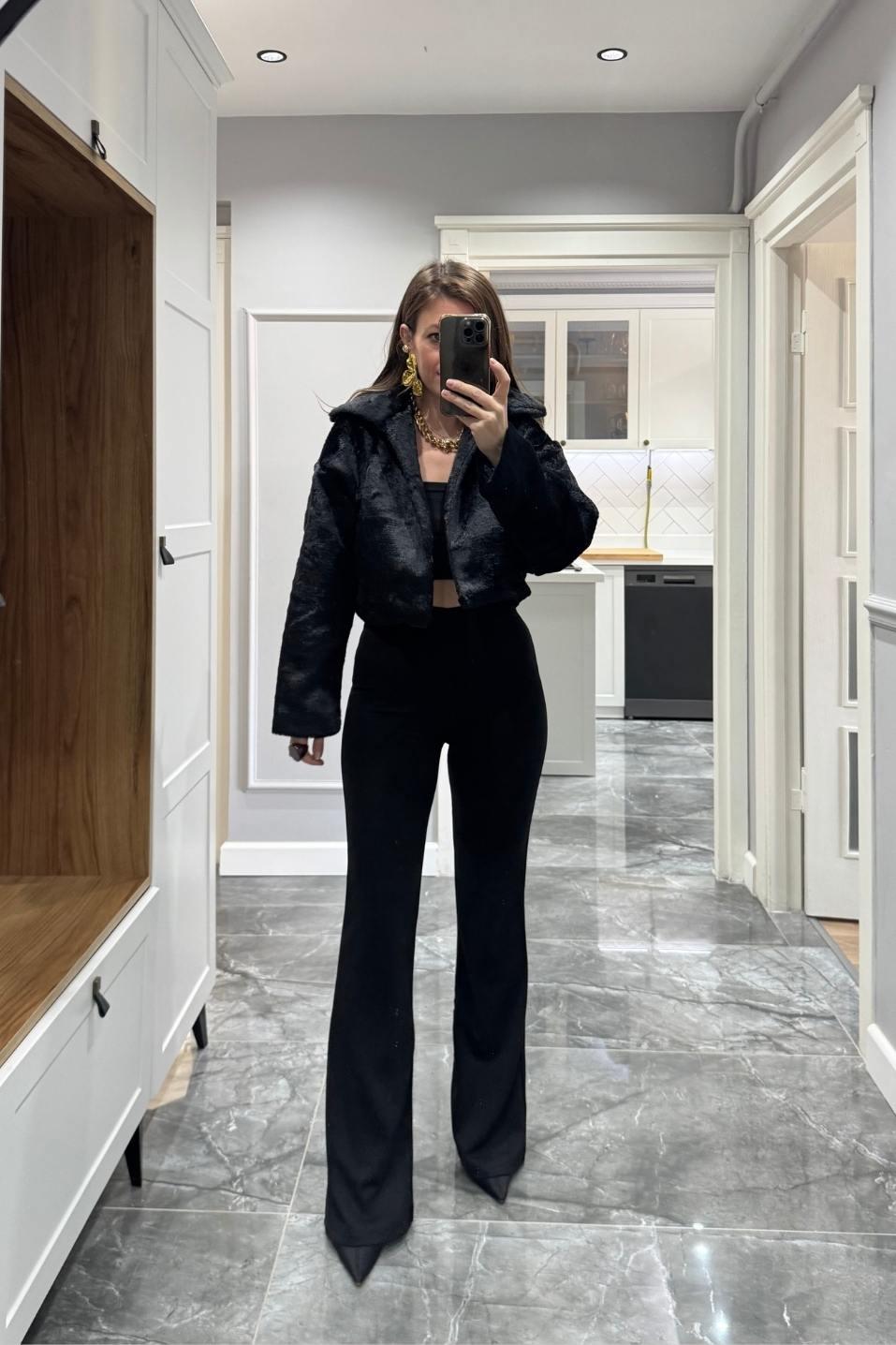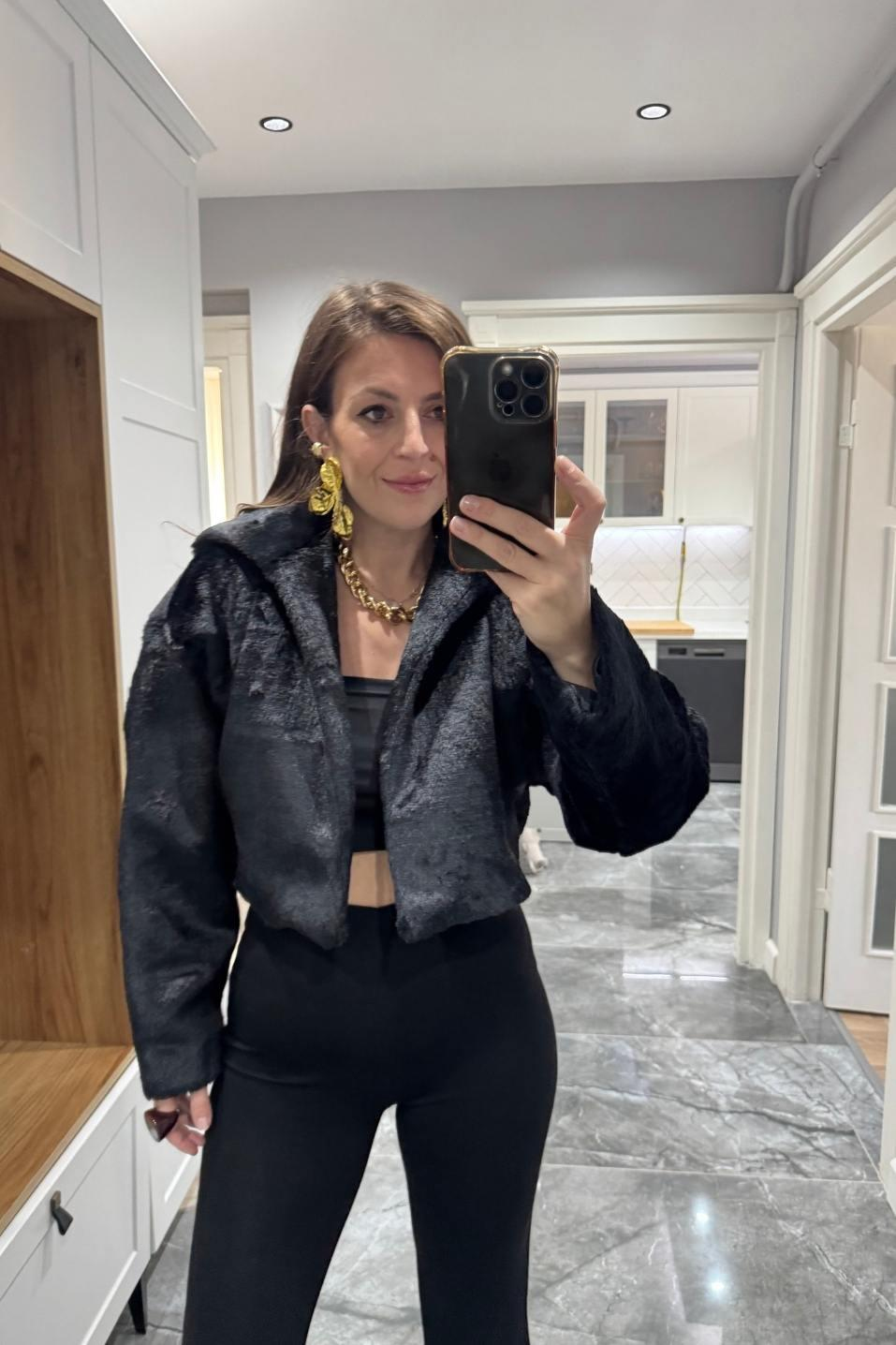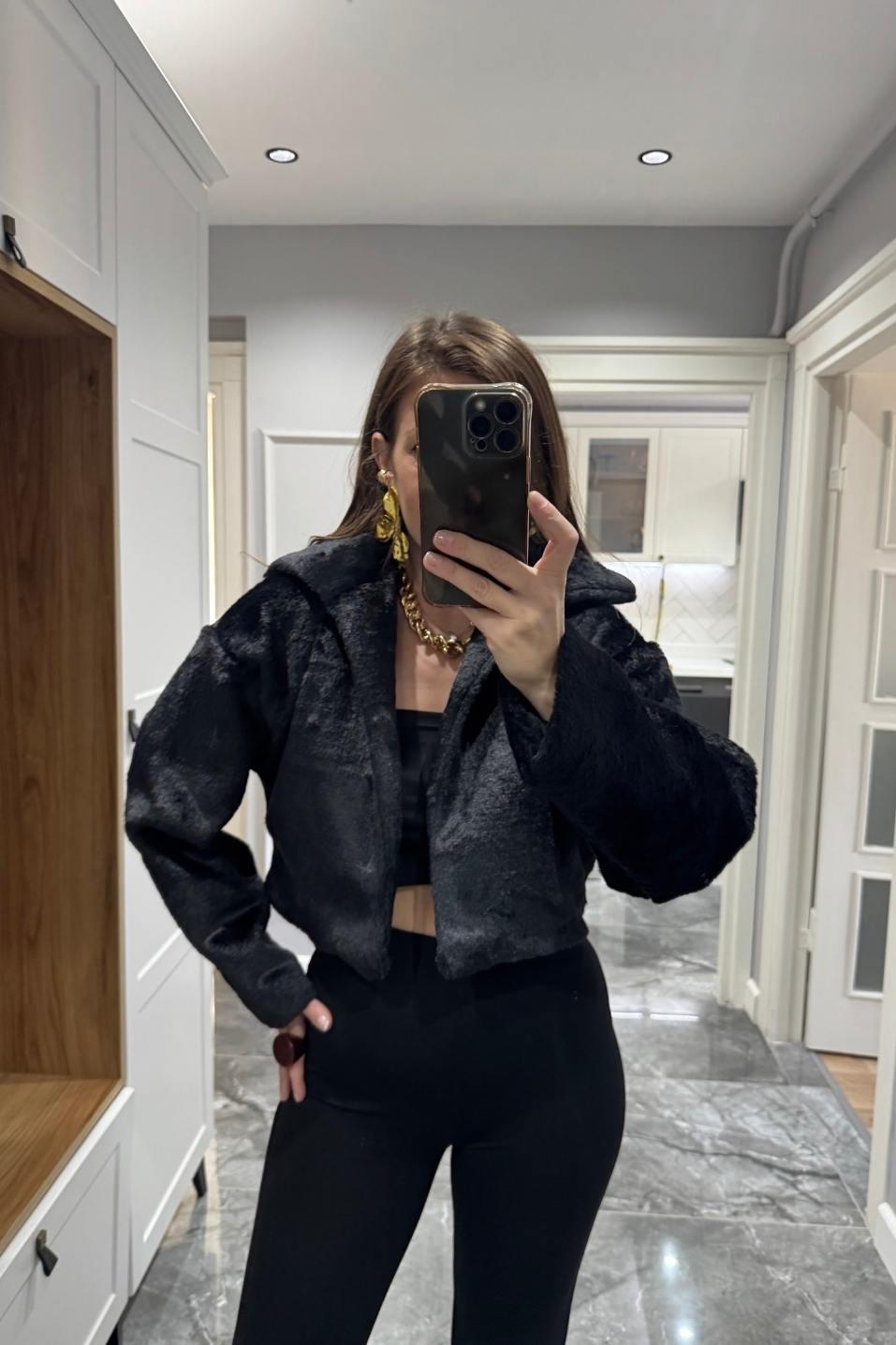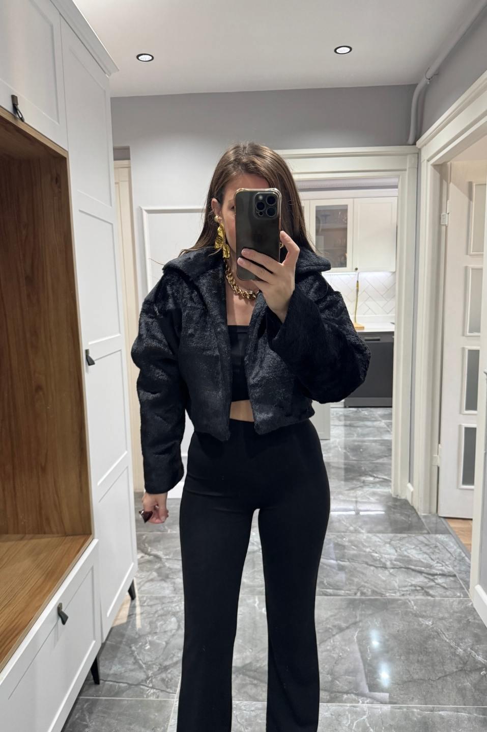 Premium Crop Kürk Mont Siyah (BA25SKDG023)