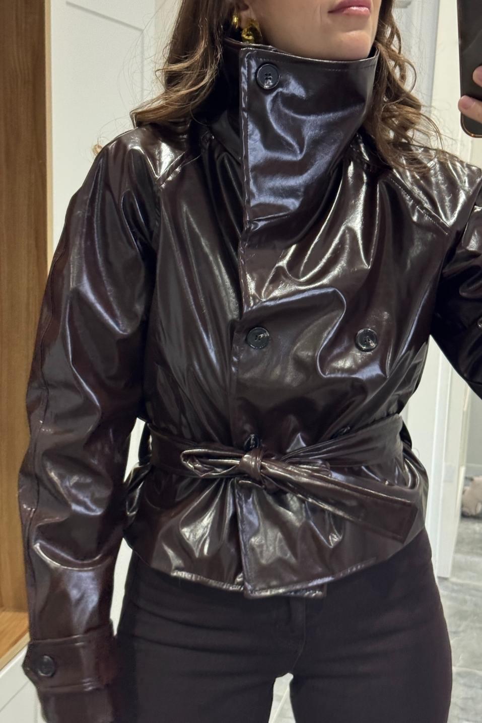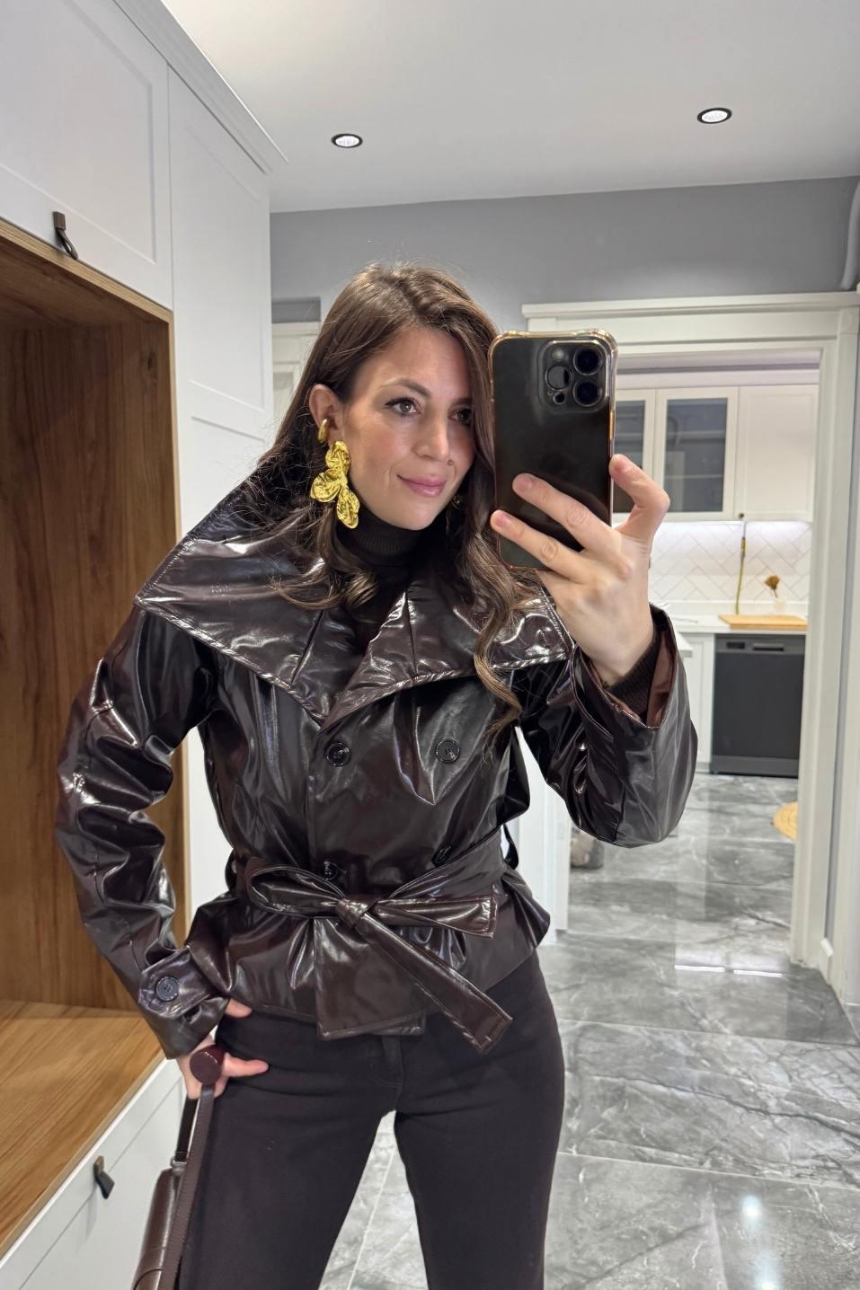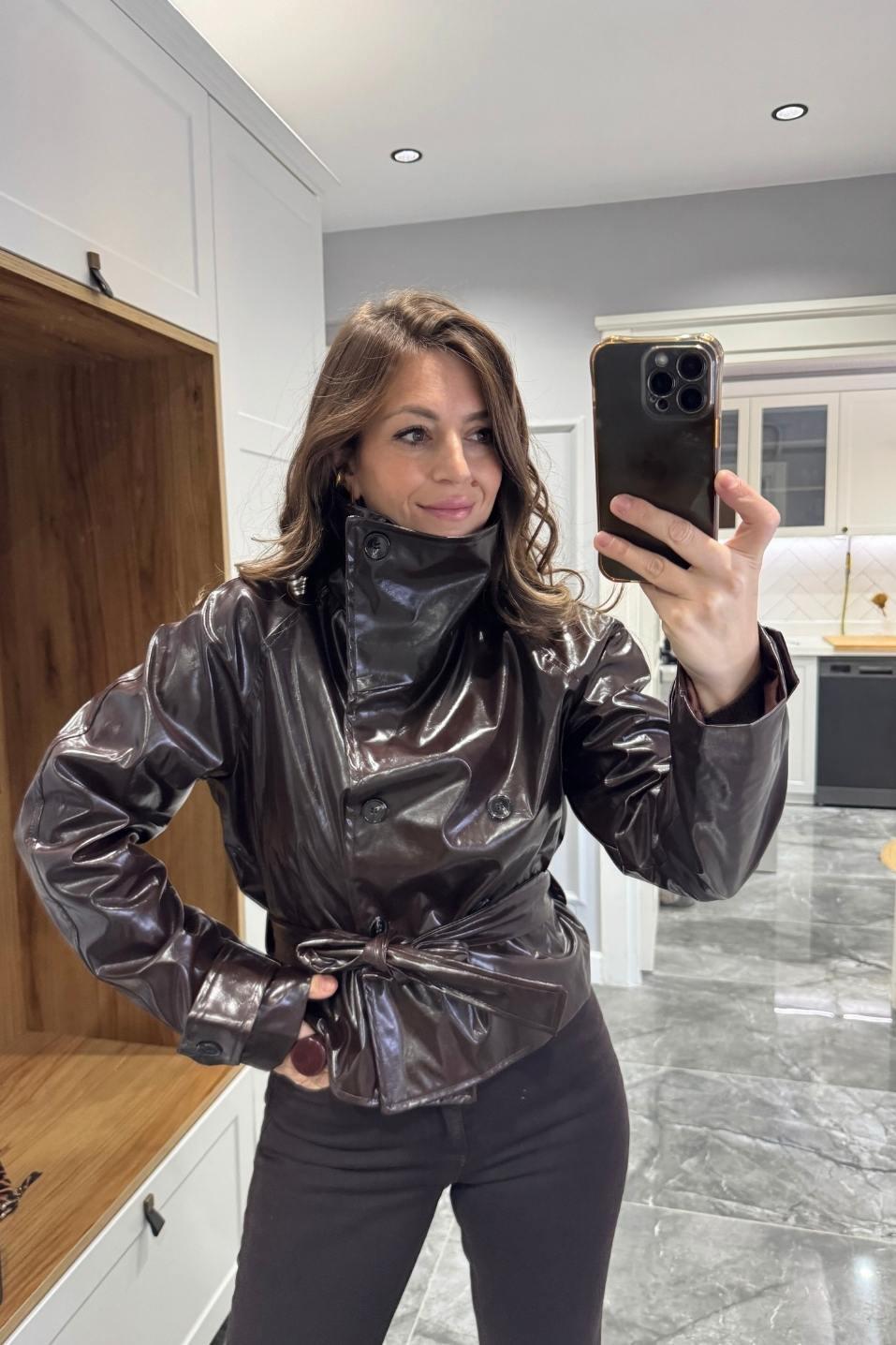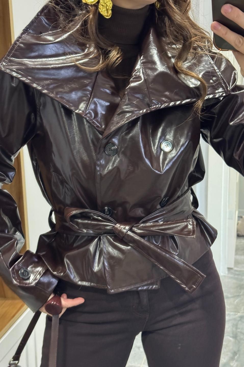 Revera Parlak Deri Ceket Kahverengi (BA25SKDG030)