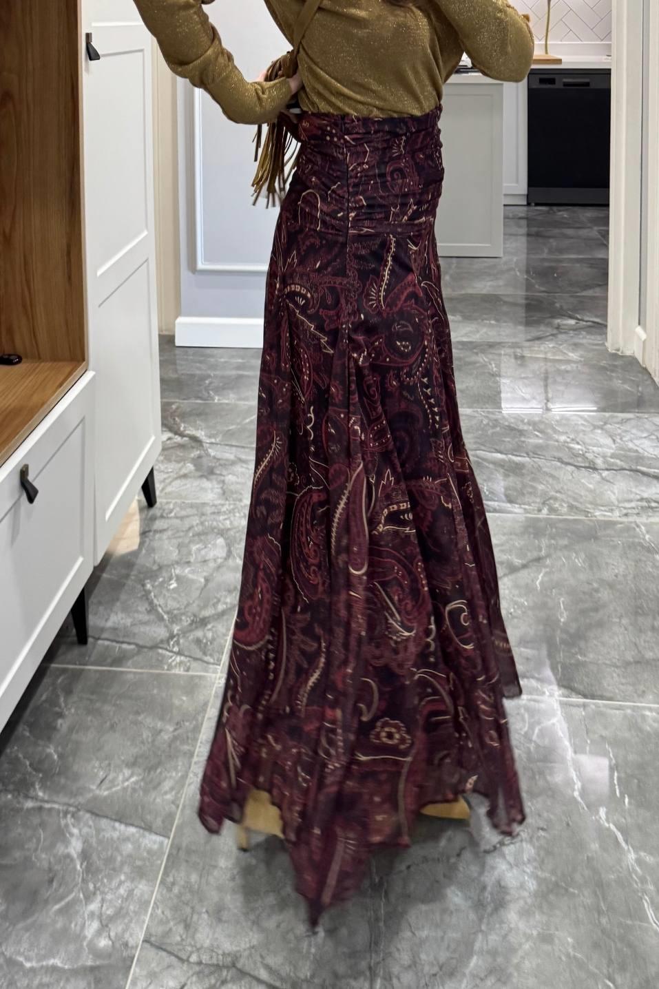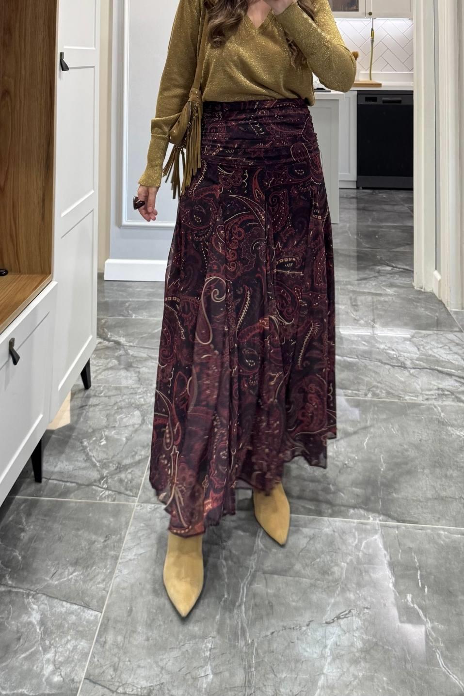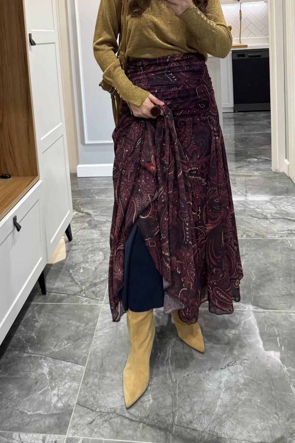 Şal Desen Astarlı Premium Etek Mürdüm (BA25SKAG009)