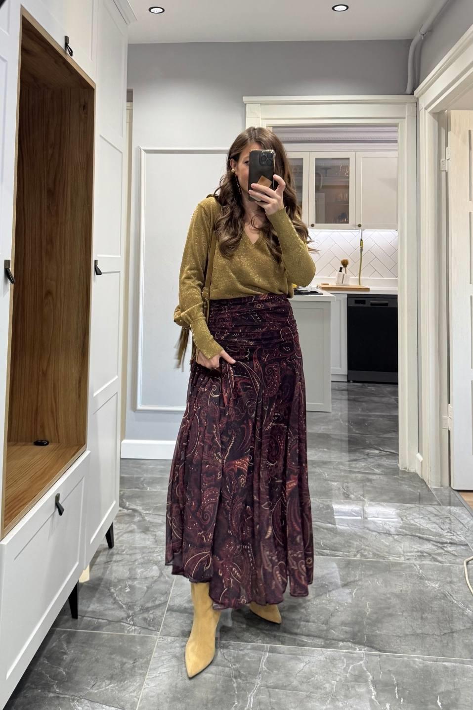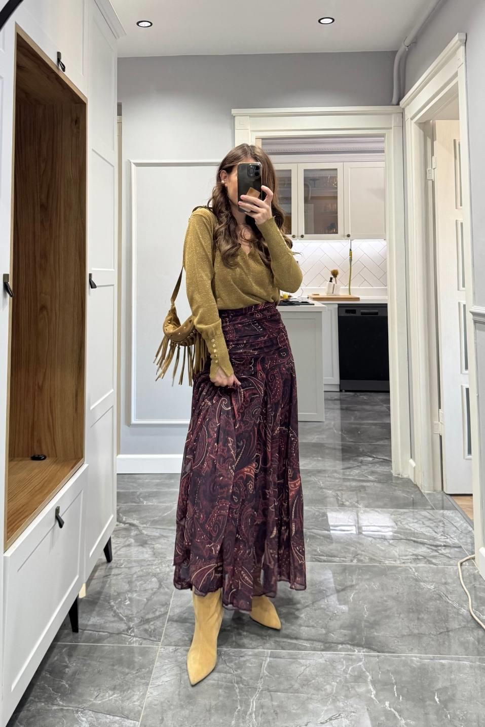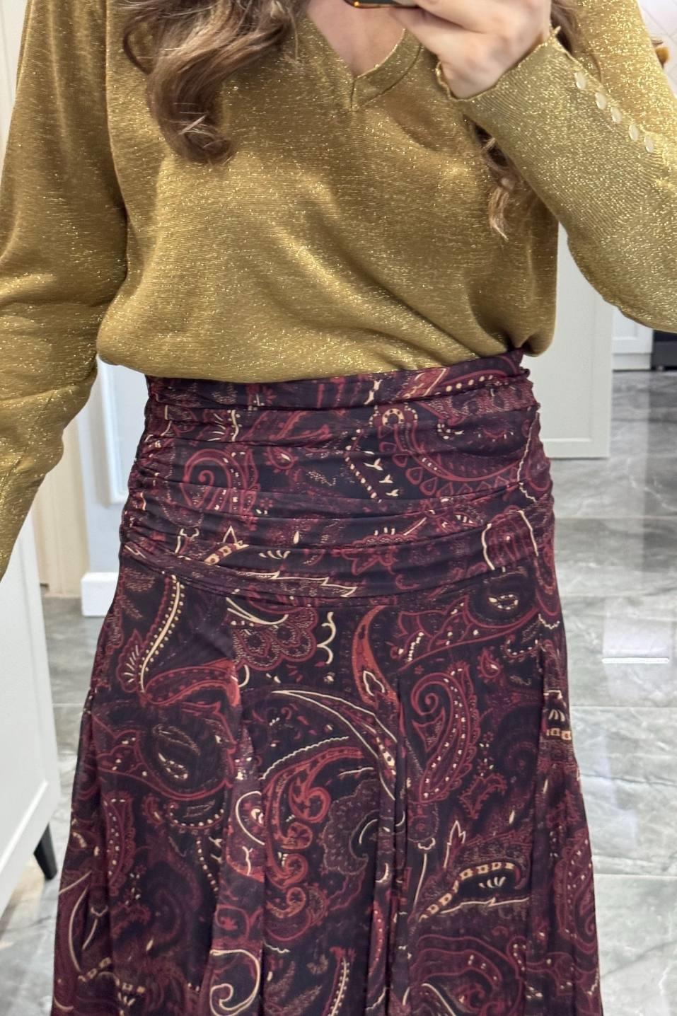 Şal Desen Astarlı Premium Etek Mürdüm (BA25SKAG009)
