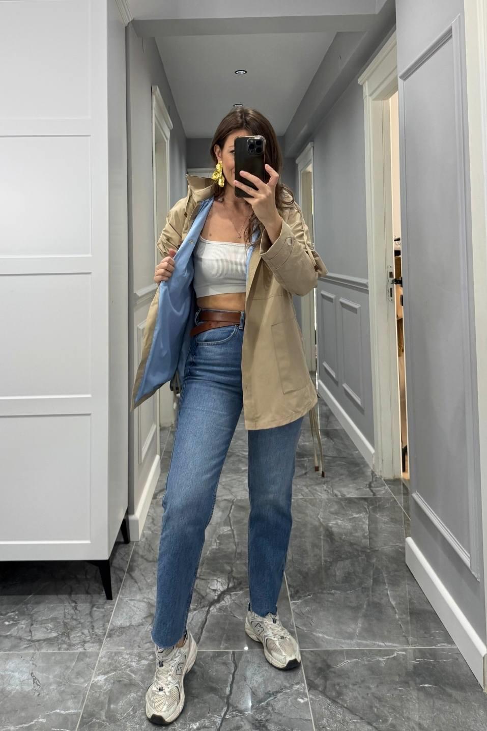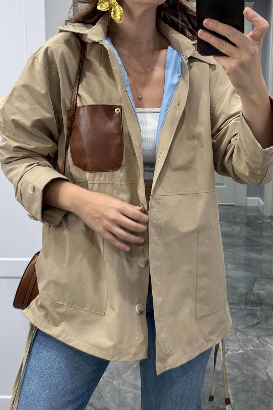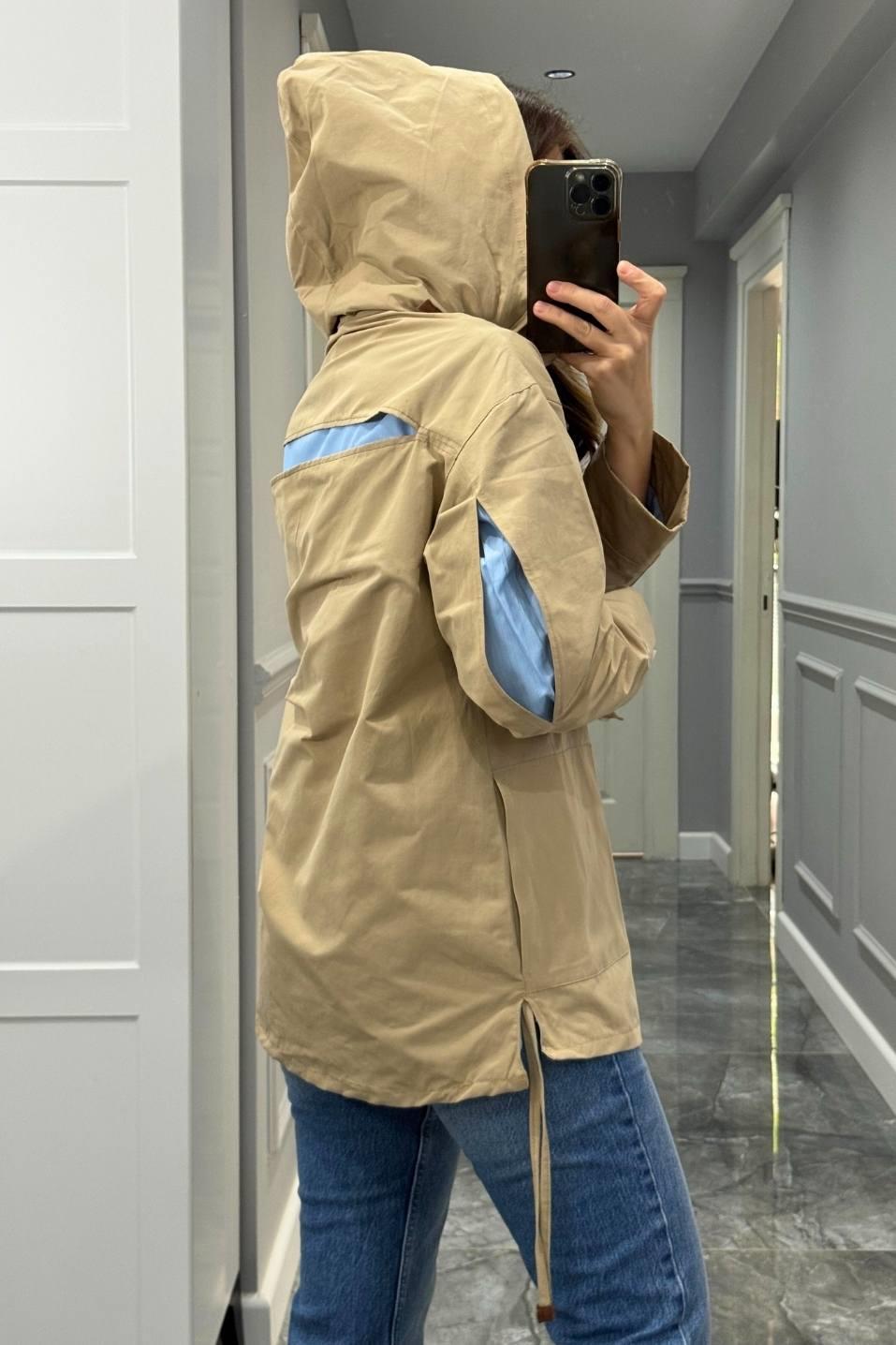 Sırt ve Kol Detaylı Tasarım Trençkot Bej (BA25SKDG015)