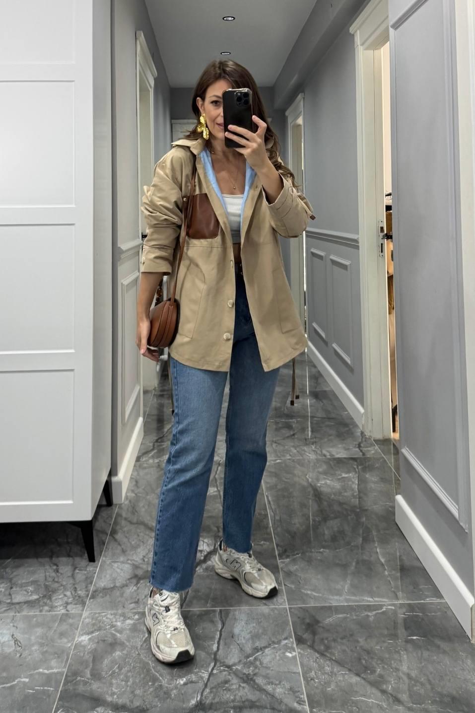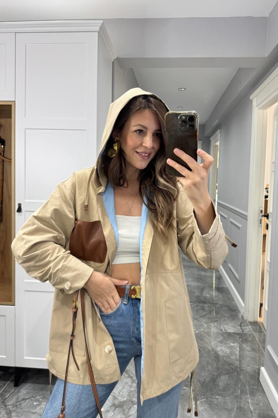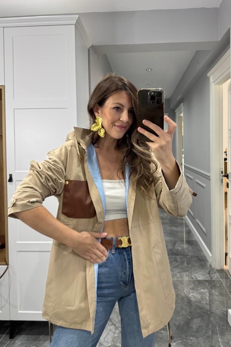Sırt ve Kol Detaylı Tasarım Trençkot Bej (BA25SKDG015)