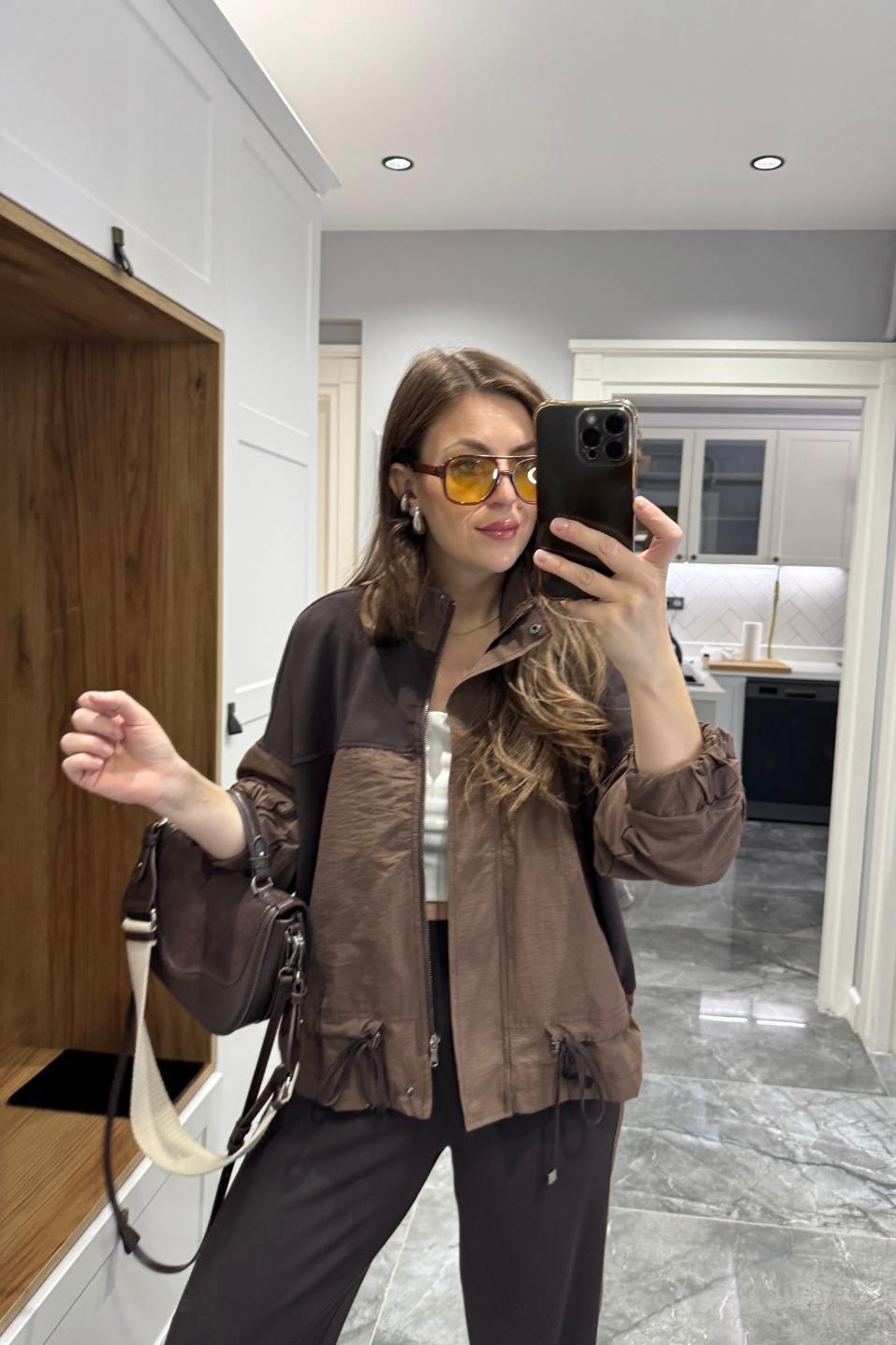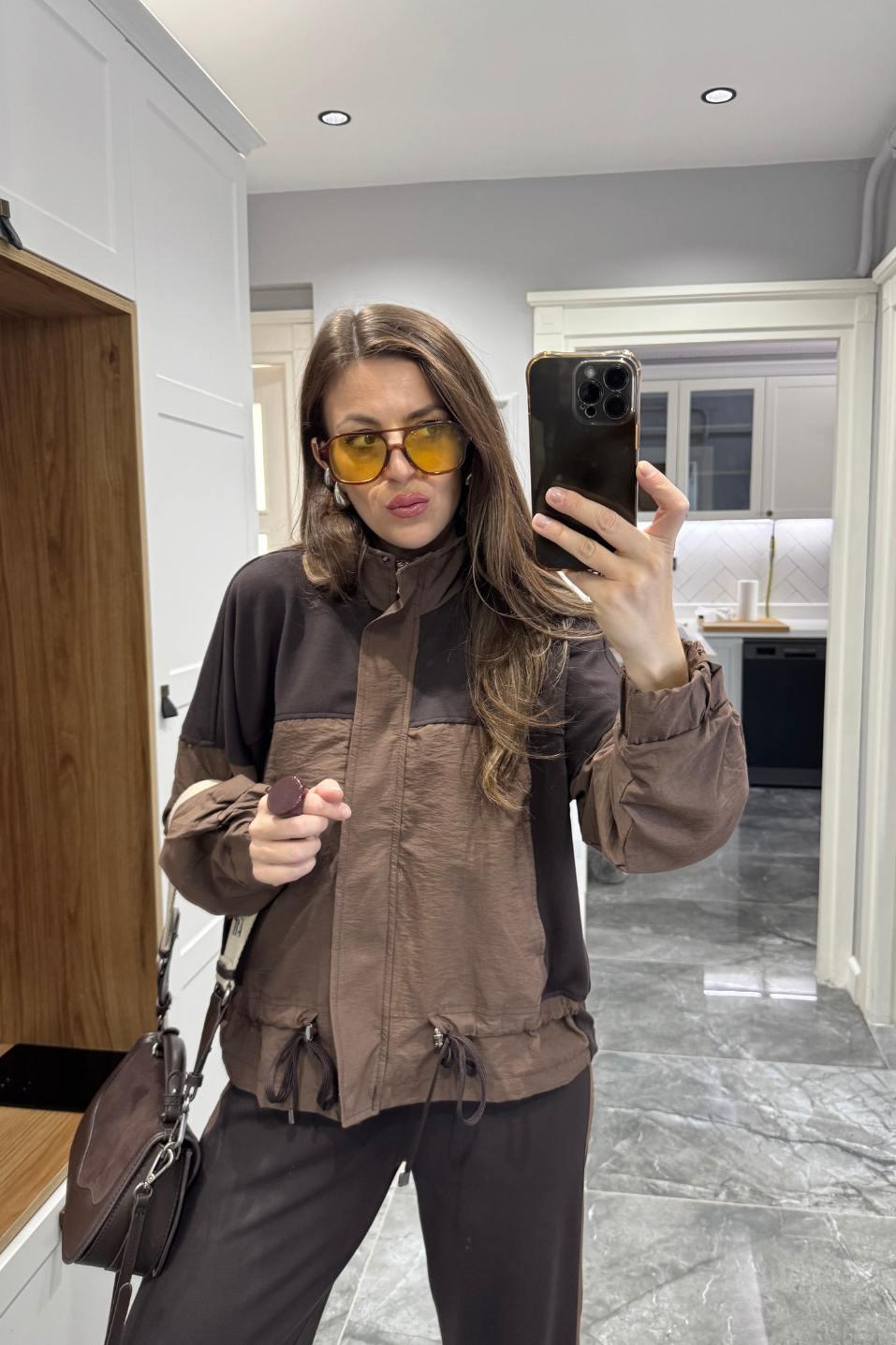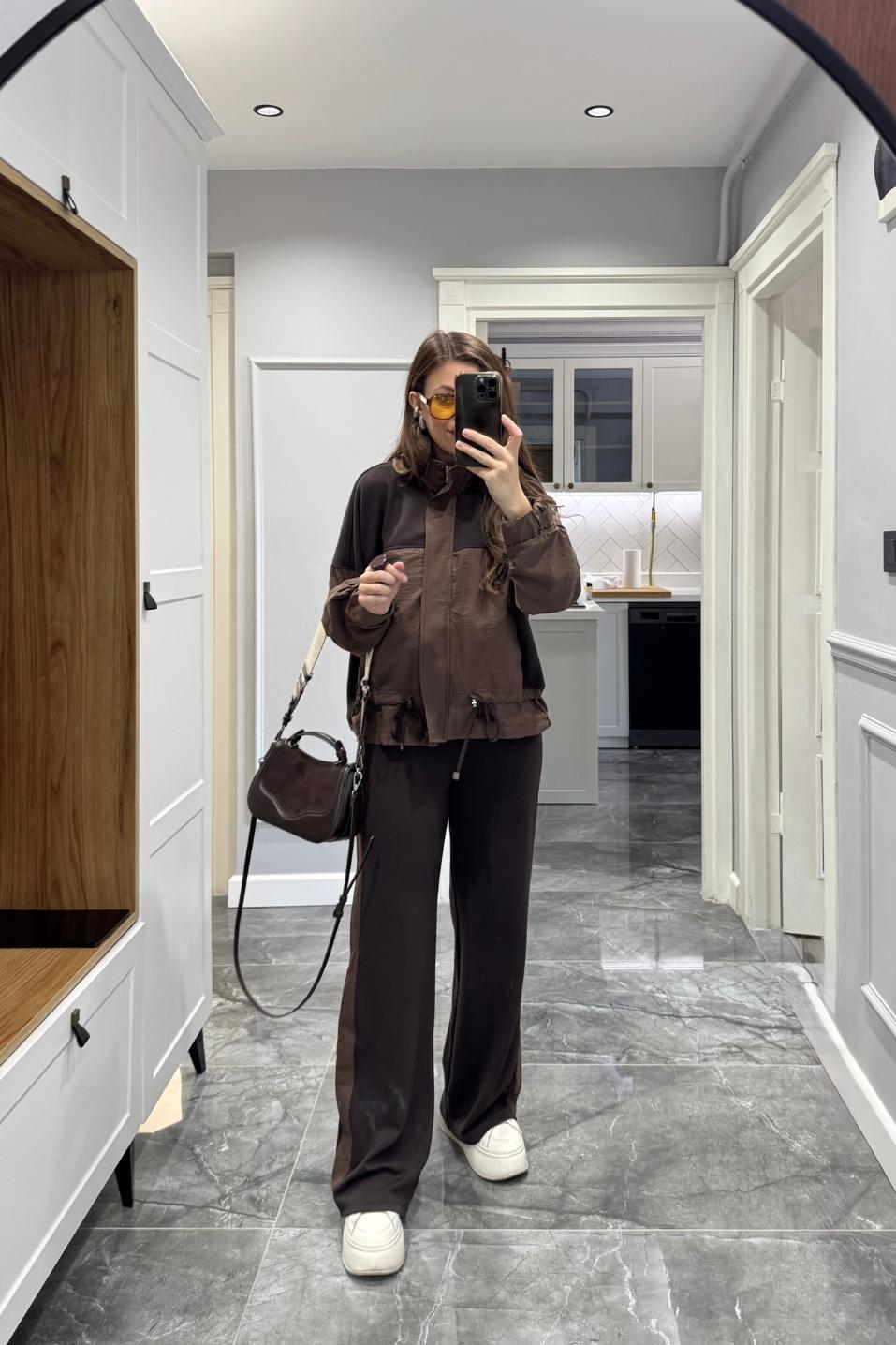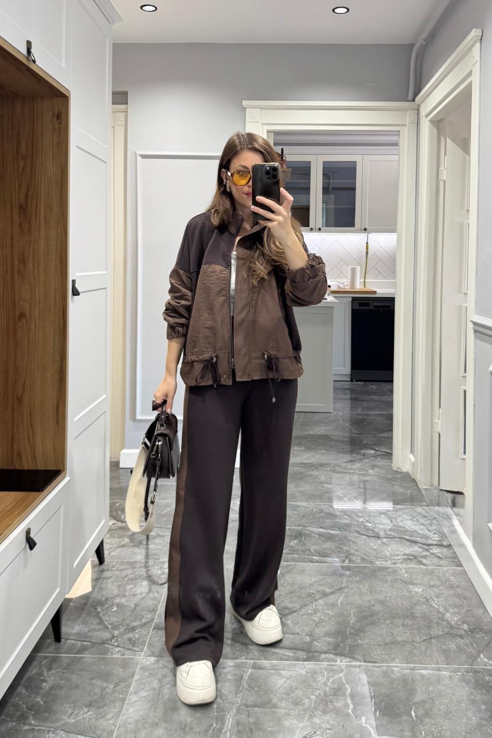 Paraşüt ve modal kumaşın zarif karışımıyla tasarlanan Terra Line Takım, konfor ve stilin mükemmel dengesini sunar. Üst kısmındaki büzgü detayı ve cepli tasarımıyla şehirli bir görünüm kazandırırken, alt kısmındaki lastikli bel formu hareket özgürlüğü sağlar. Kahvenin sıcak tonlarıyla birleşen mat dokusu sayesinde hem sportif hem de cool bir çizgi yakalar. Yeni sezon Banu Angay koleksiyonunun öne çıkan “premium casual” parçalarından biridir.