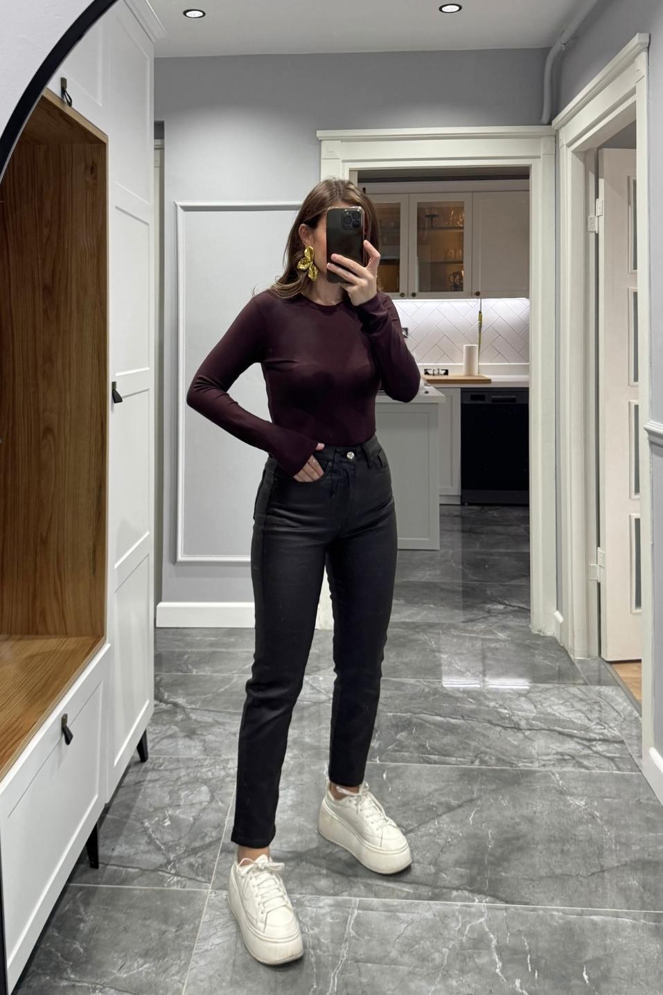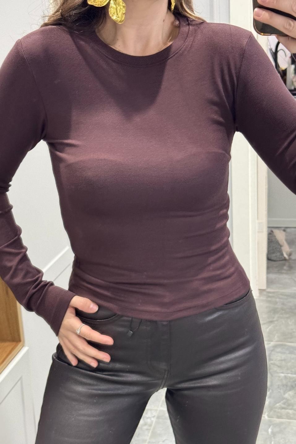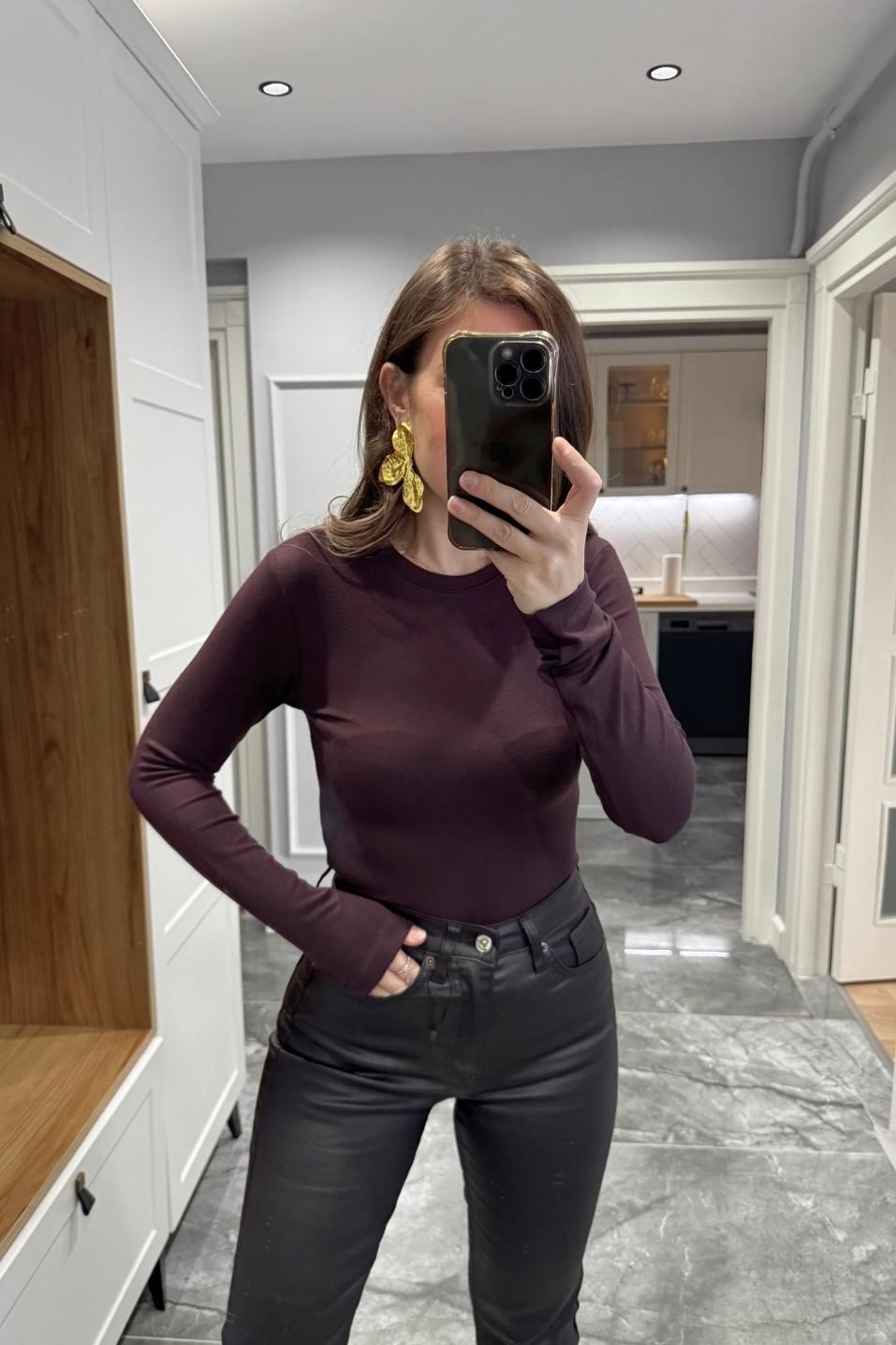 Uzun Kollu Basic Bluz Kahverengi (BA25SKUG032)
