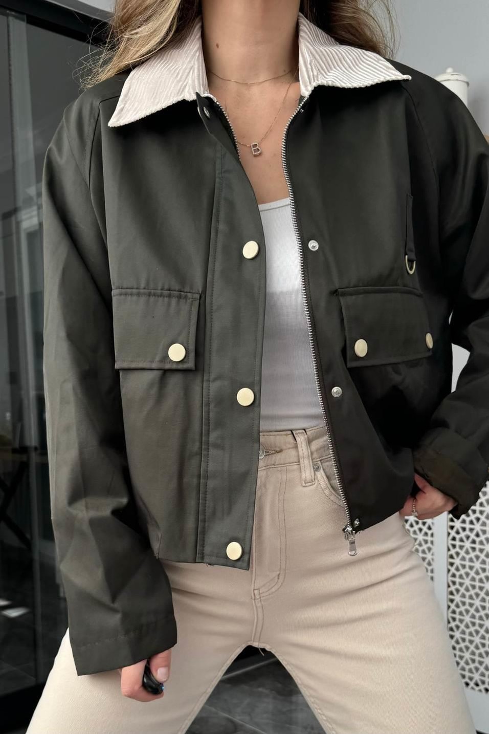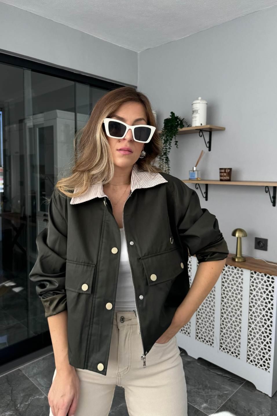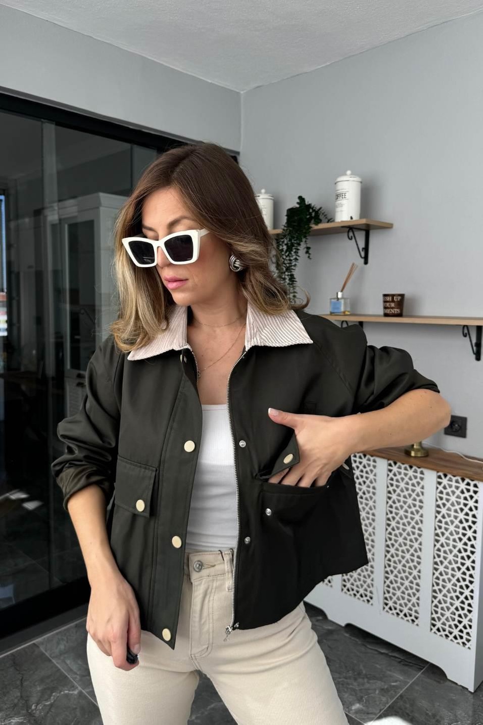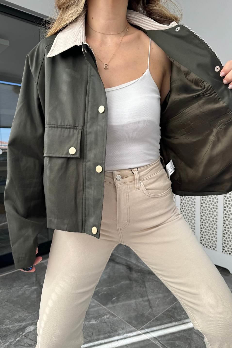 Zr Model Kadife Yakalı Ceket Haki Yeşil (BA24SKDG018)